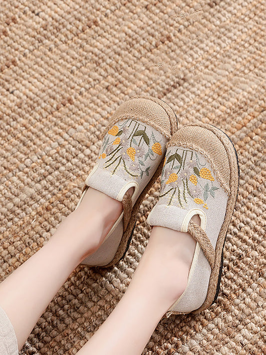 Women Summer Vintage Embroidery Linen Flat Shoes