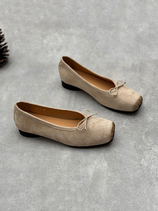 Women Artsy Bowknot Genuine Leather Ballet Low Heel Shoes