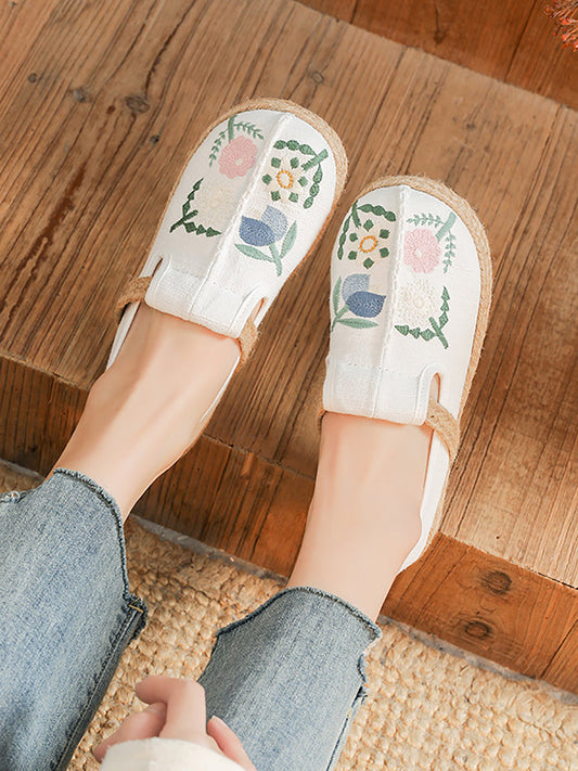 Women Artsy Summer Linen Flower Embroidery Shoes