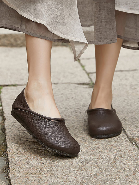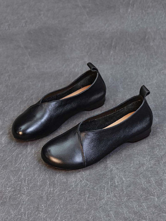 Women Summer Casual Solid Leather Spliced Flat Shoes