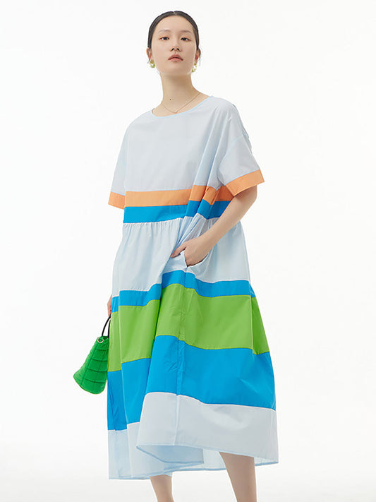 O Neck Short Sleeve Loose Casual Cotton Dress