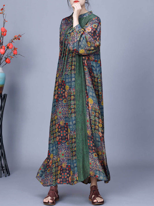 Women Vintage Floral Spliced Spring Loose Dress