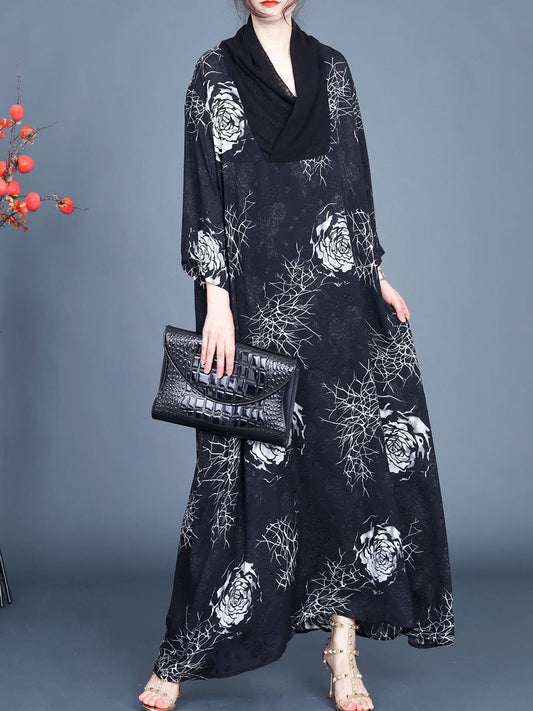 Women Ethnic Irregular Flower Spliced Loose Dress