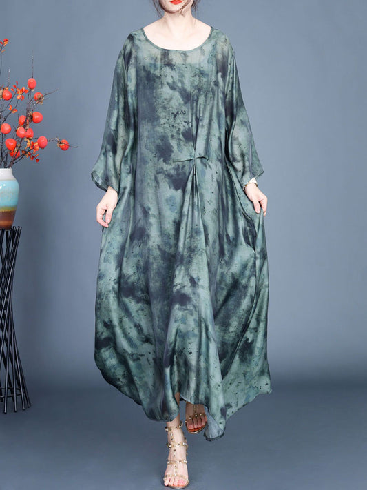 Women Spring Artsy Tie-dye Irregular Hem Dress