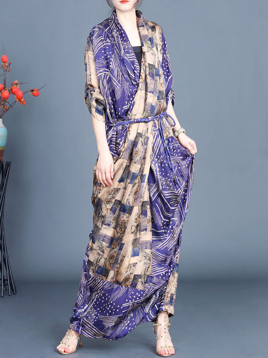 Women Spring Vintage Irregular Spliced Drawstring Dress