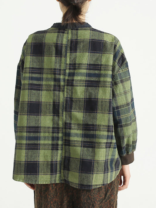 Plus Size Women Plaid Hand-Made Linen Cotton Loose Shirt