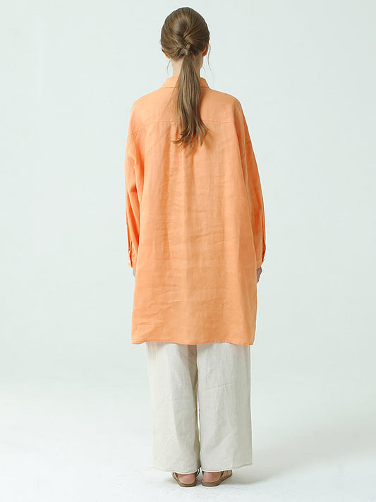 Plus Size Women Cotton Linen Long Sleeve Spring Shirt
