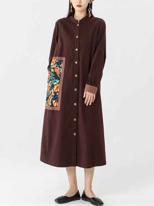 PLUS Size - Cotton Linen Pocket Patchwork Breasted Coat