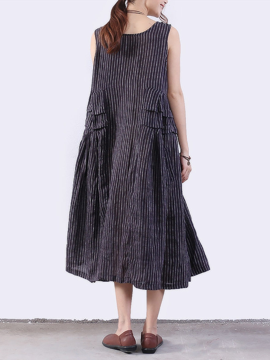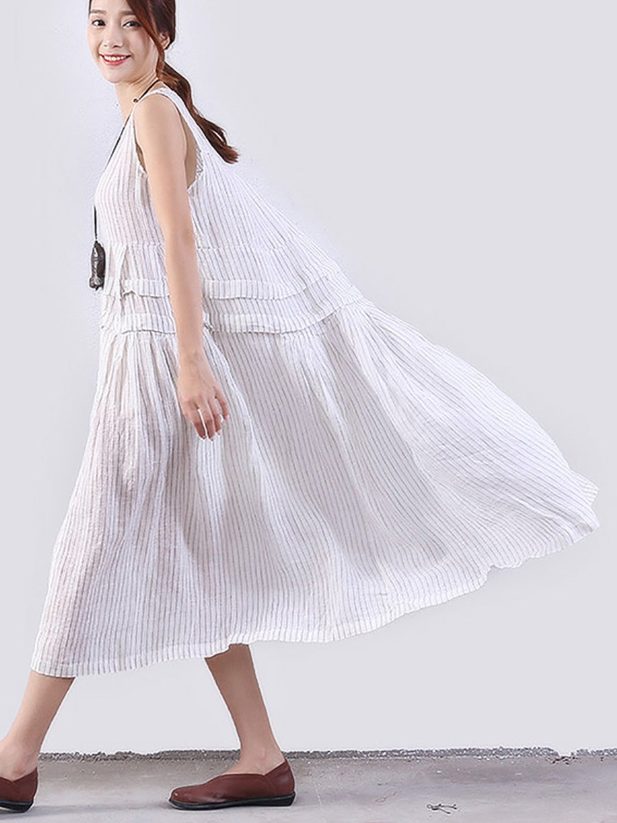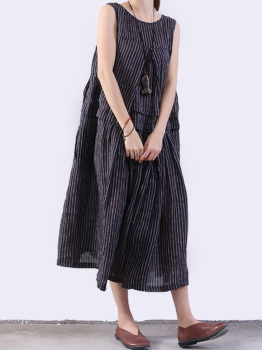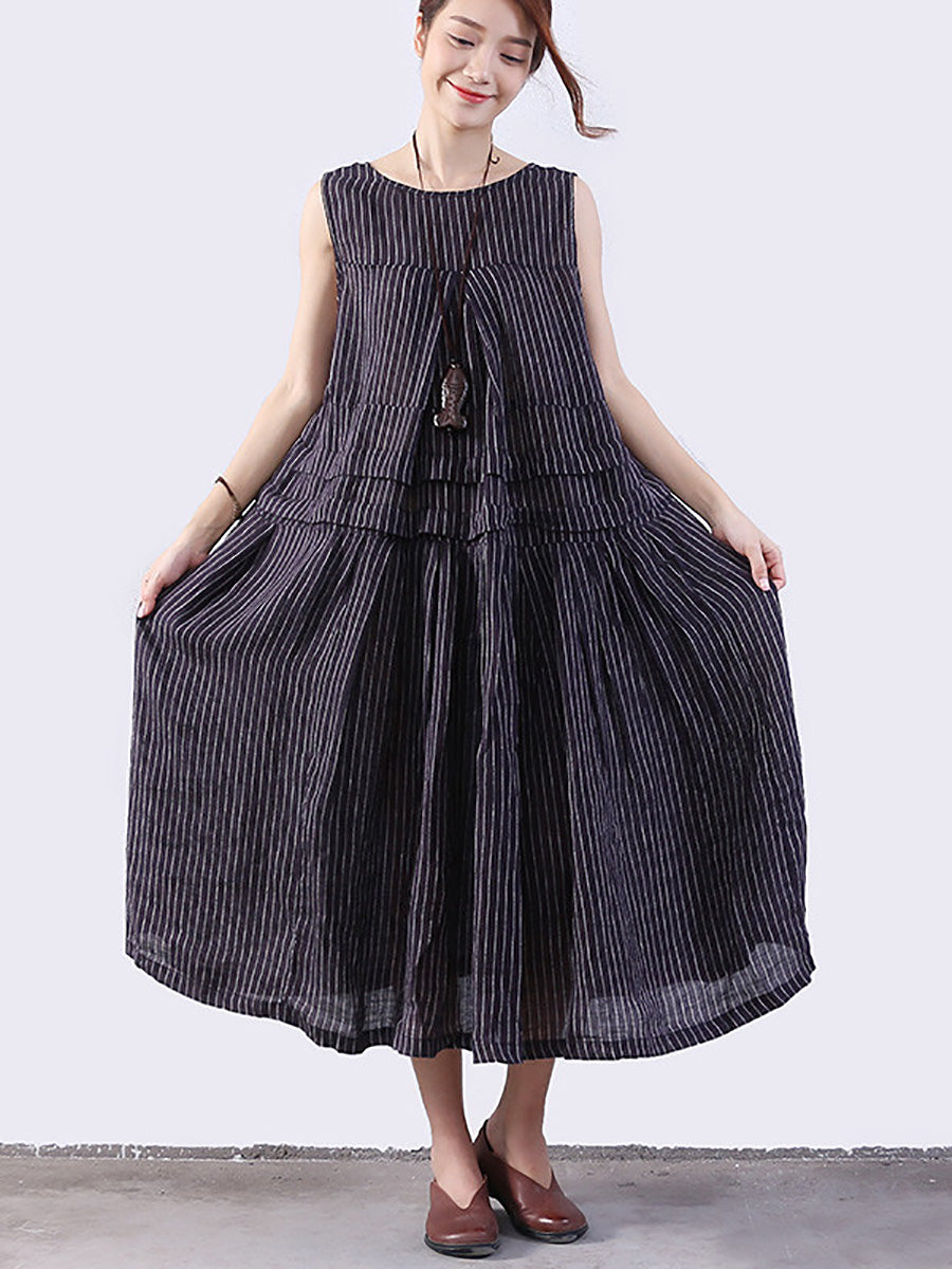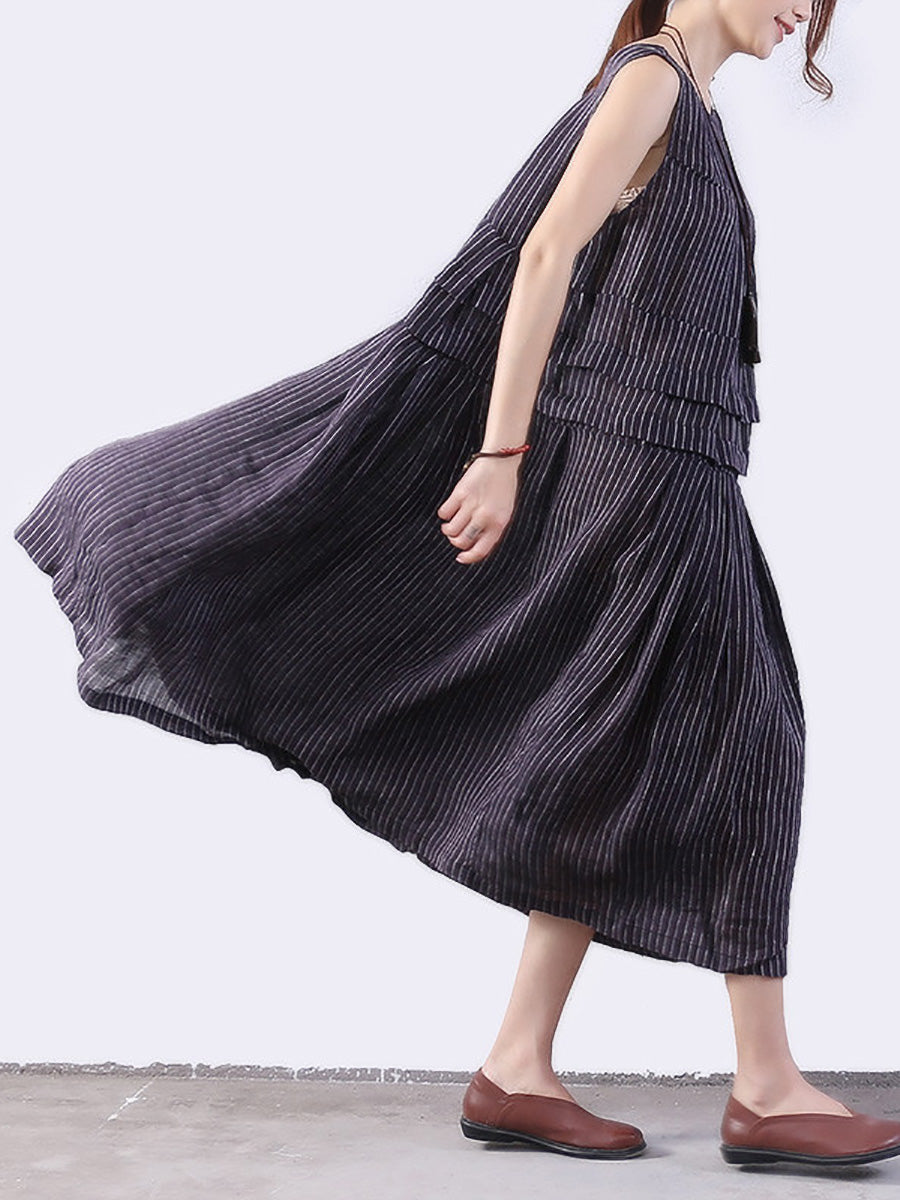 Plus Size Women Folded Splicing Stripe Vest Dress