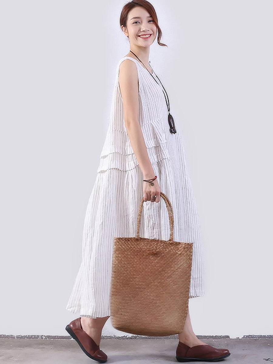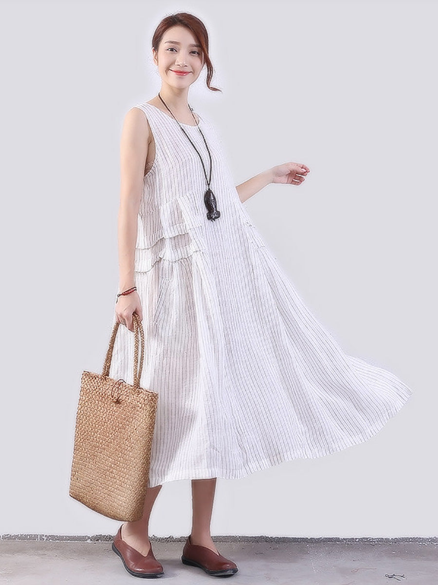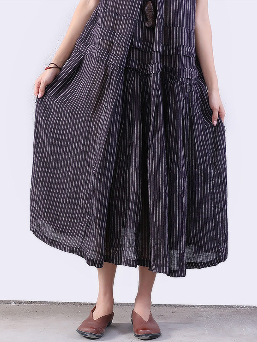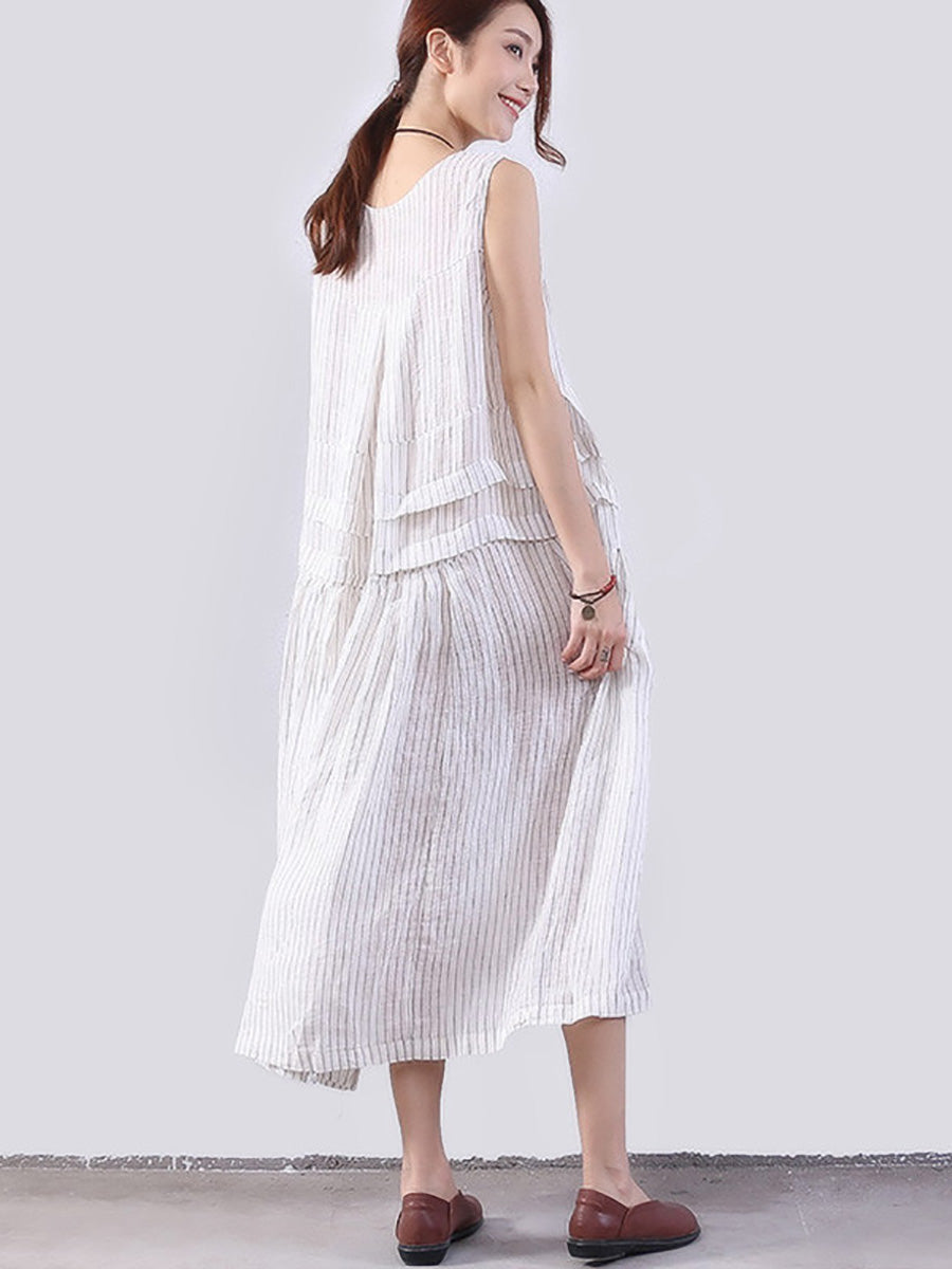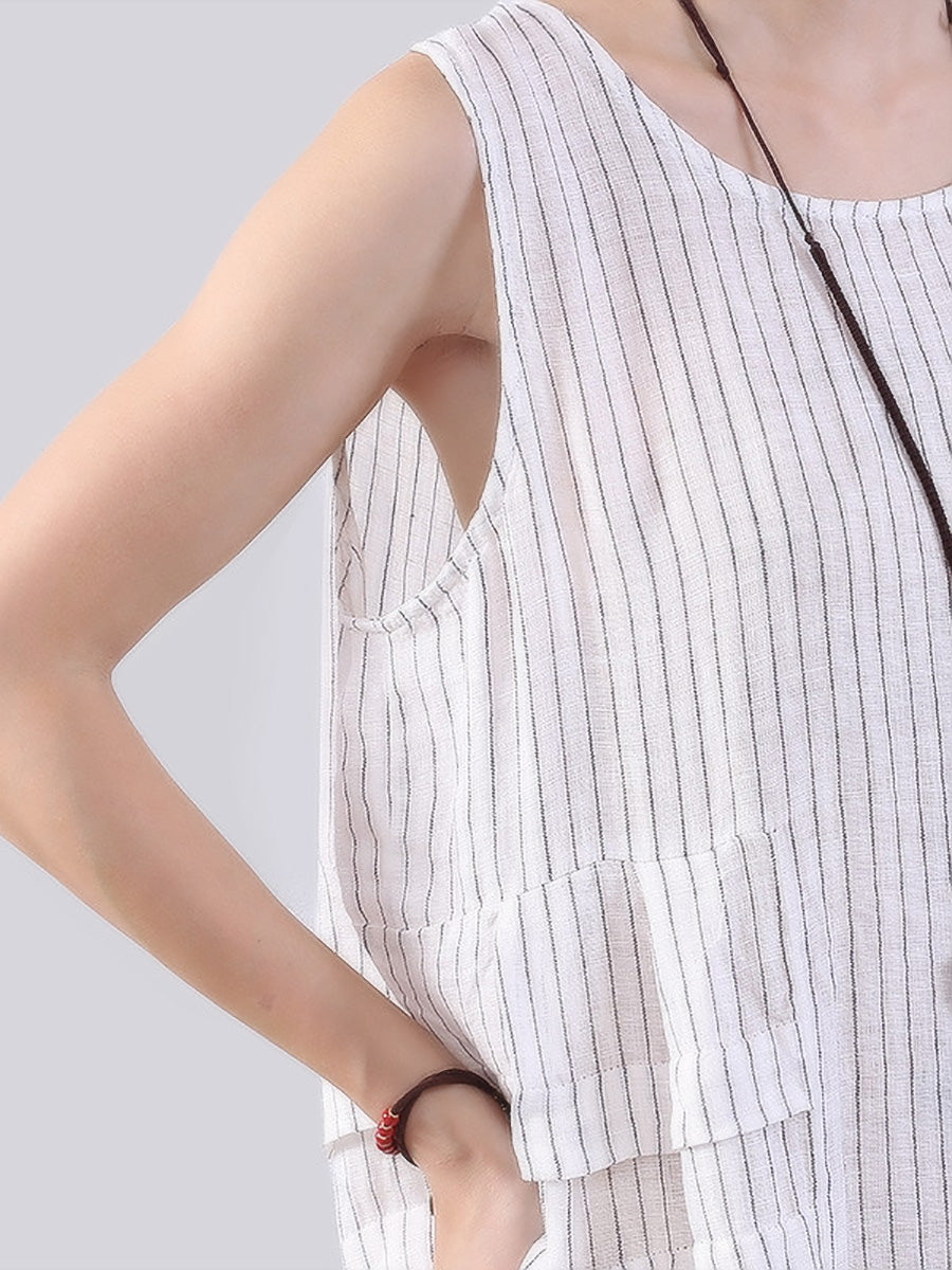 Plus Size Women Folded Splicing Stripe Vest Dress